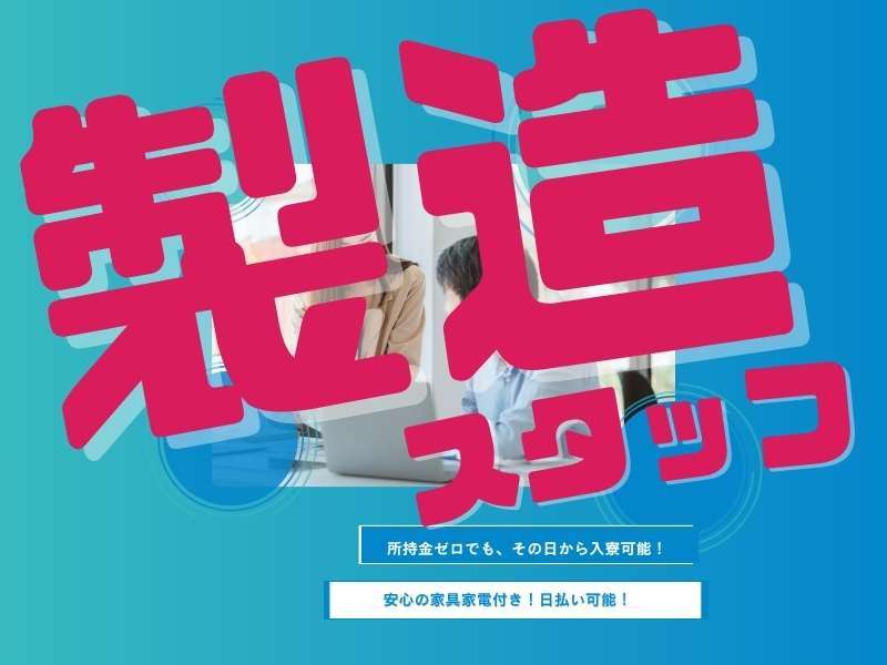 | 応募方法 | 【まずは応募から始まる5ステップ】 1. 応募フォーム送信 2. 担当からヒアリング 3. 条件などをご確認 4. 寮のご案内 5. お仕事開始! 気になる方は今すぐご応募ください! 【会社所在地】 〒550-0012 大阪市西区立売堀1-4-9 中井産業ビル1号館3F |