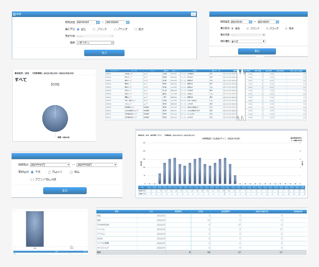 - 店舗ごと分析や応募者のペルソナチェックなどもワンクリック